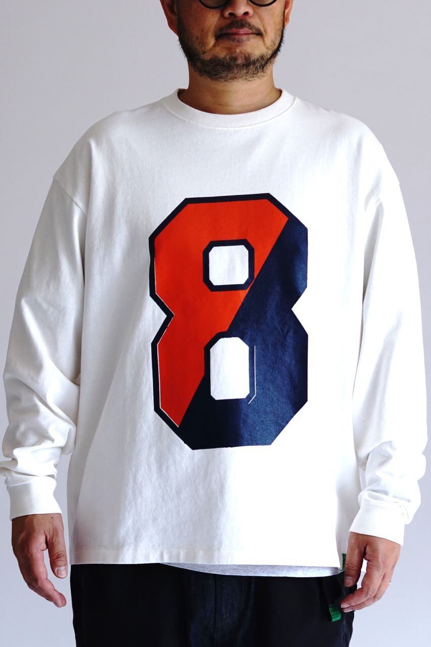 フロントには【8】、背面には【9】を配し、ブランド名「H.A.K.U」を象徴する 89(ハク)プリント を表現。身生地に合わせたツートーンカラーと、ブランドロゴのバックプリントがアクセントになっています。プリントはアメリカンな油性インクを使用し、着用を重ねることで油分が抜けて硬化し、ヴィンテージのような風合いを楽しめます。