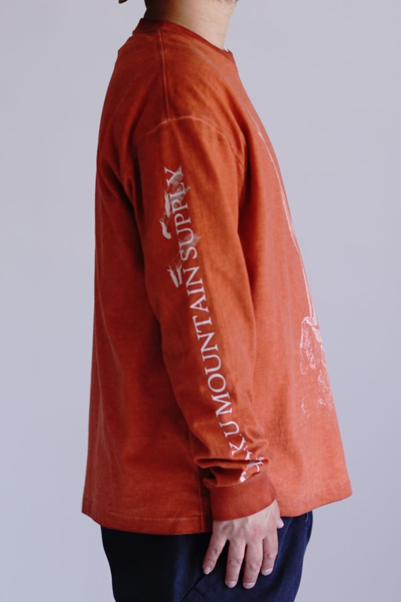 9.5ozのオリジナル空紡天竺 [CABIN JERSEY] を使用したヘビーウェイト仕様のロングスリーブTシャツです。顔料染めによるヴィンテージ感のある風合いが特徴で、着用を重ねるごとに自然な色落ちを楽しめます。(オフホワイトのみ油抜きによる製品洗い仕上げ)