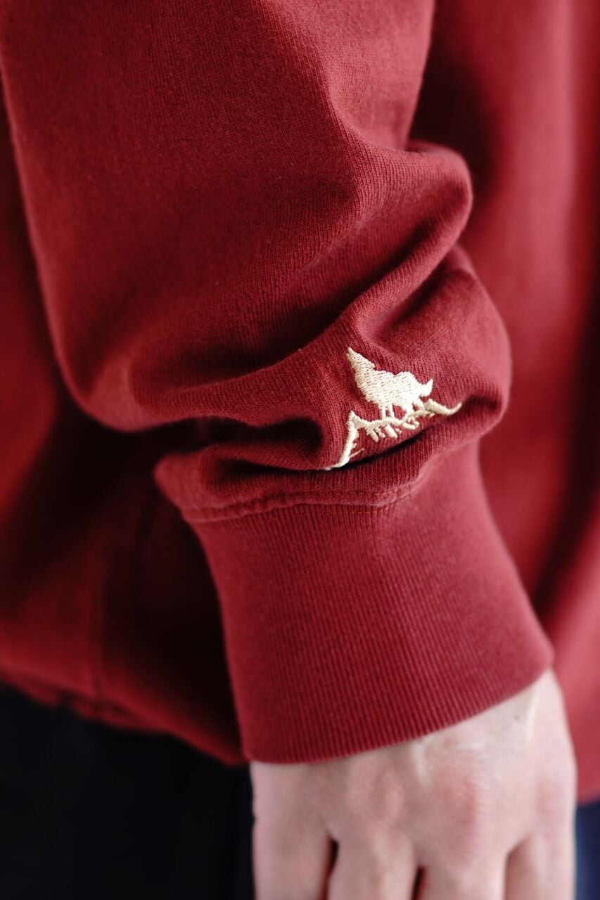 横幅にゆとりを持たせ、丈をやや短めに整えたボックスシルエットは、オリジナルの型紙をもとにミリ単位まで調整された絶妙なバランス。袖口にはブランドアイコンであるウルフロゴの刺繍、胸ポケット内側にはブランドネームの刺繍を施し、細部まで丁寧に作り込まれています。