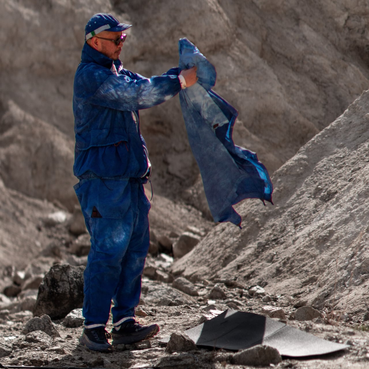 岡山・井原の自社工場にて、職人が1点ずつ手作業で染め上げています。藍染ならではの深いグラデーションは、化学染料では表現できない奥行き。さらに手絞りによって、同じ柄は二つと存在しません。ナイロンの軽さ・速乾性といった機能性を保ちながら、自然に溶け込み、同時に個性として際立つ存在感を放ちます。“美しく、フィールドで使える道具”を追求した、GUNJOならではの素材です。