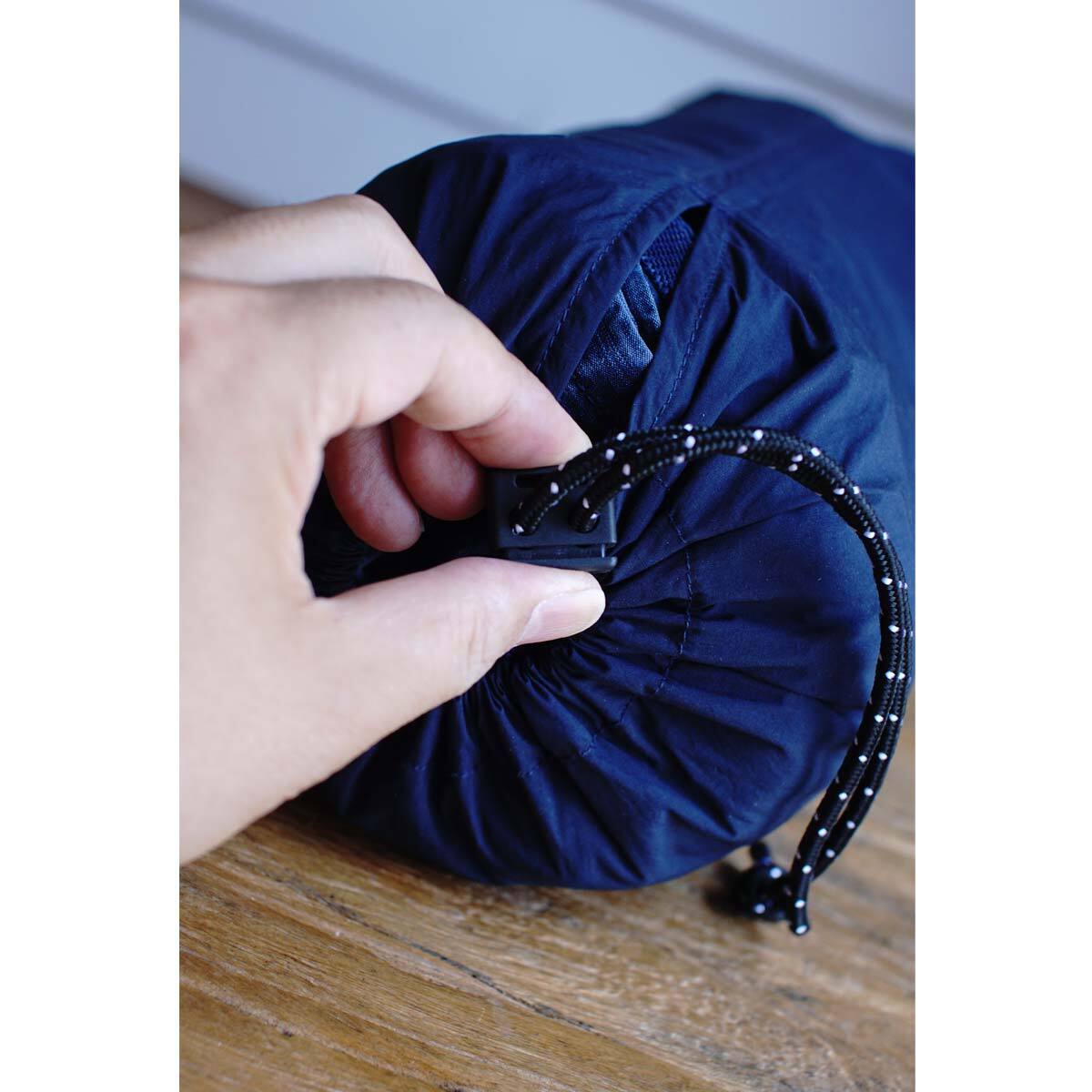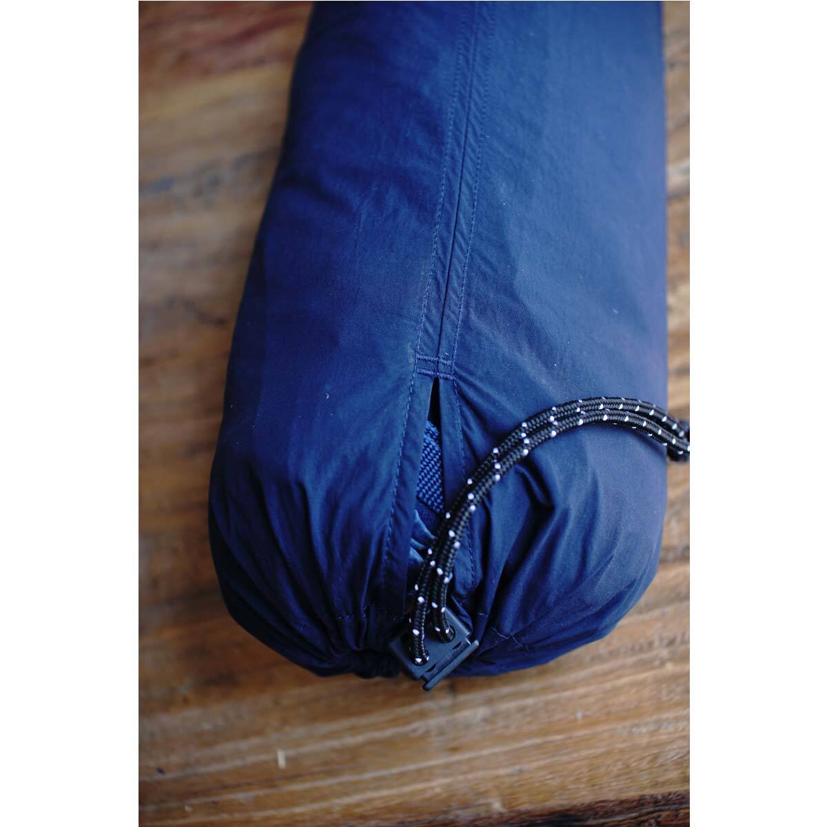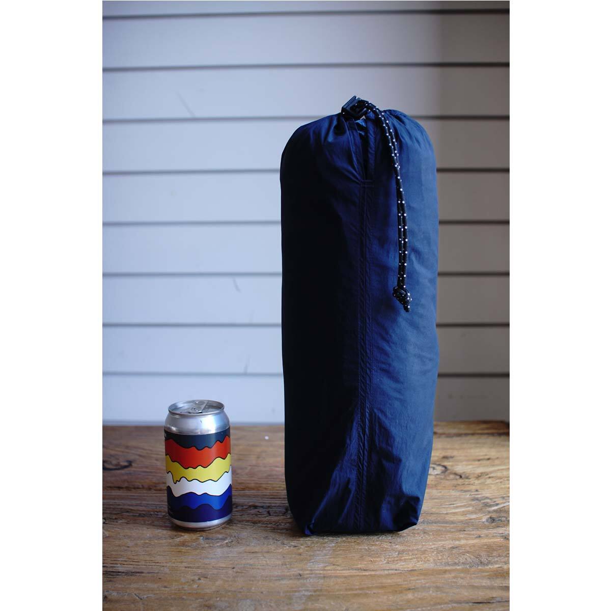 【ロープ染色】でインディゴ染めした綿糸と、強度の強い【フィラメント糸】というナイロンを「ジャガード織機」で織りあげた難燃性&撥水性を兼備したインディゴテントクロスを使用。日に焼け,変色し、使い込むことで退色する。