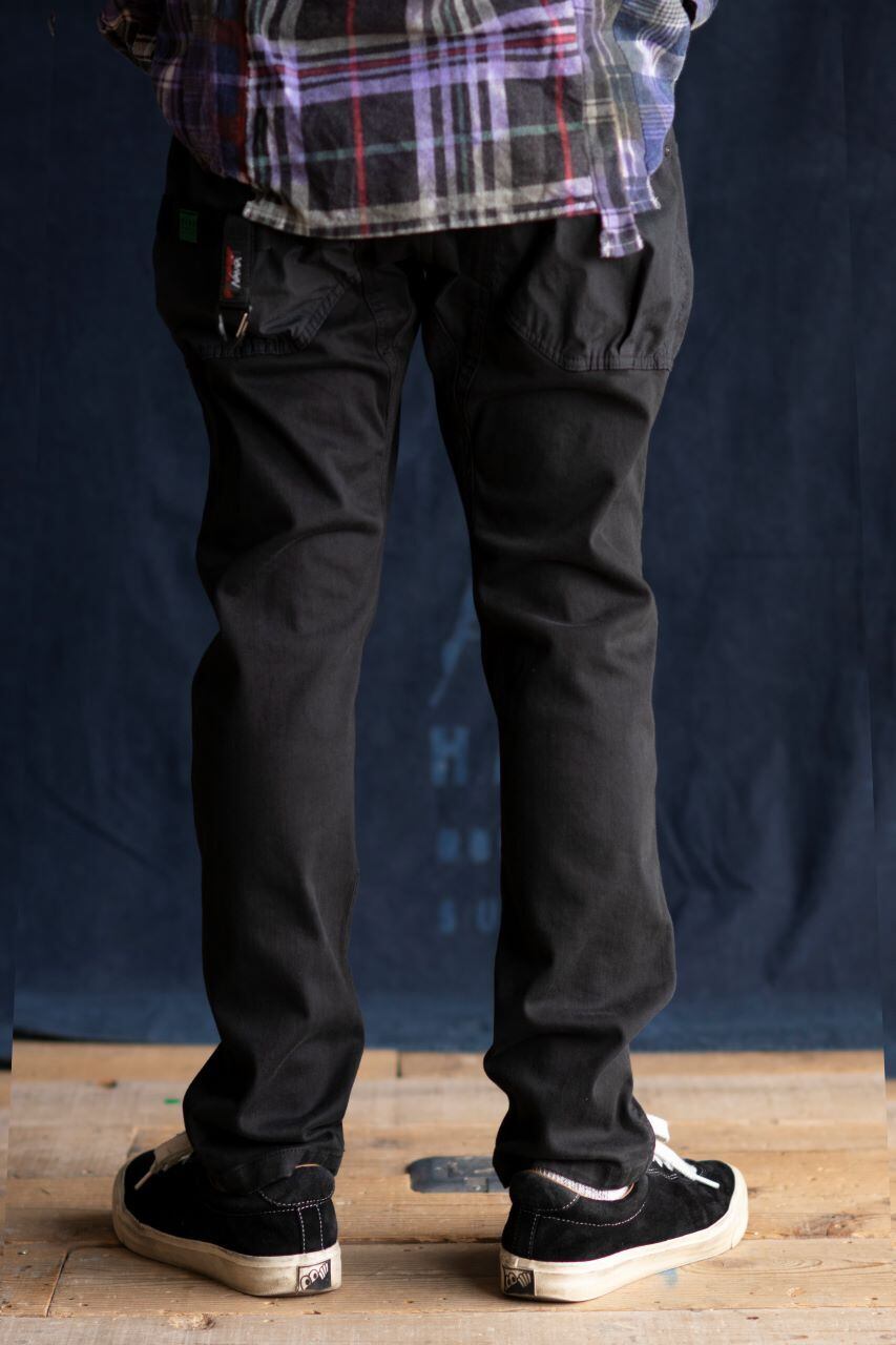 「ハンズフリーポケット」部分にNANGAオリジナル素材【HINOC(ヒノック)】を採用。難燃性に優れ、かつ丈夫な素材で収容力抜群。内股に配したガゼットクロッチで広範囲な可動域を確保し、全体的に窮屈感なく着用することが出来ます。また、後ろ中心にシームを追加し食い込みを緩和し、ヒップ回りのフィットがスッキリはきやすくなりました。