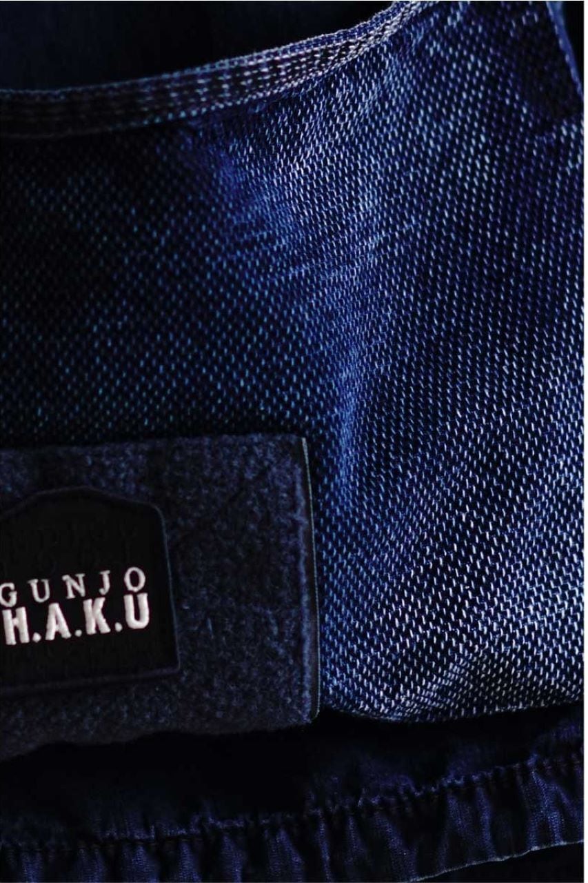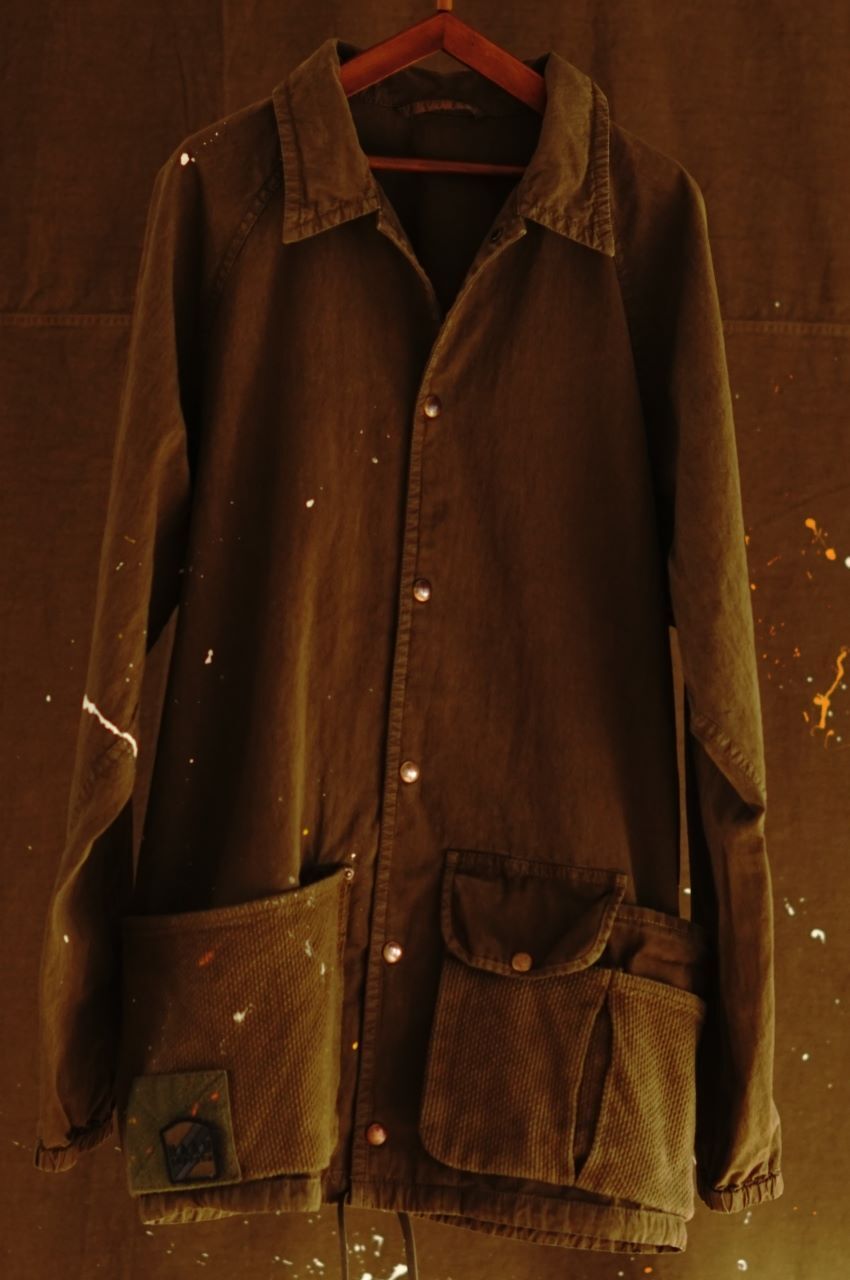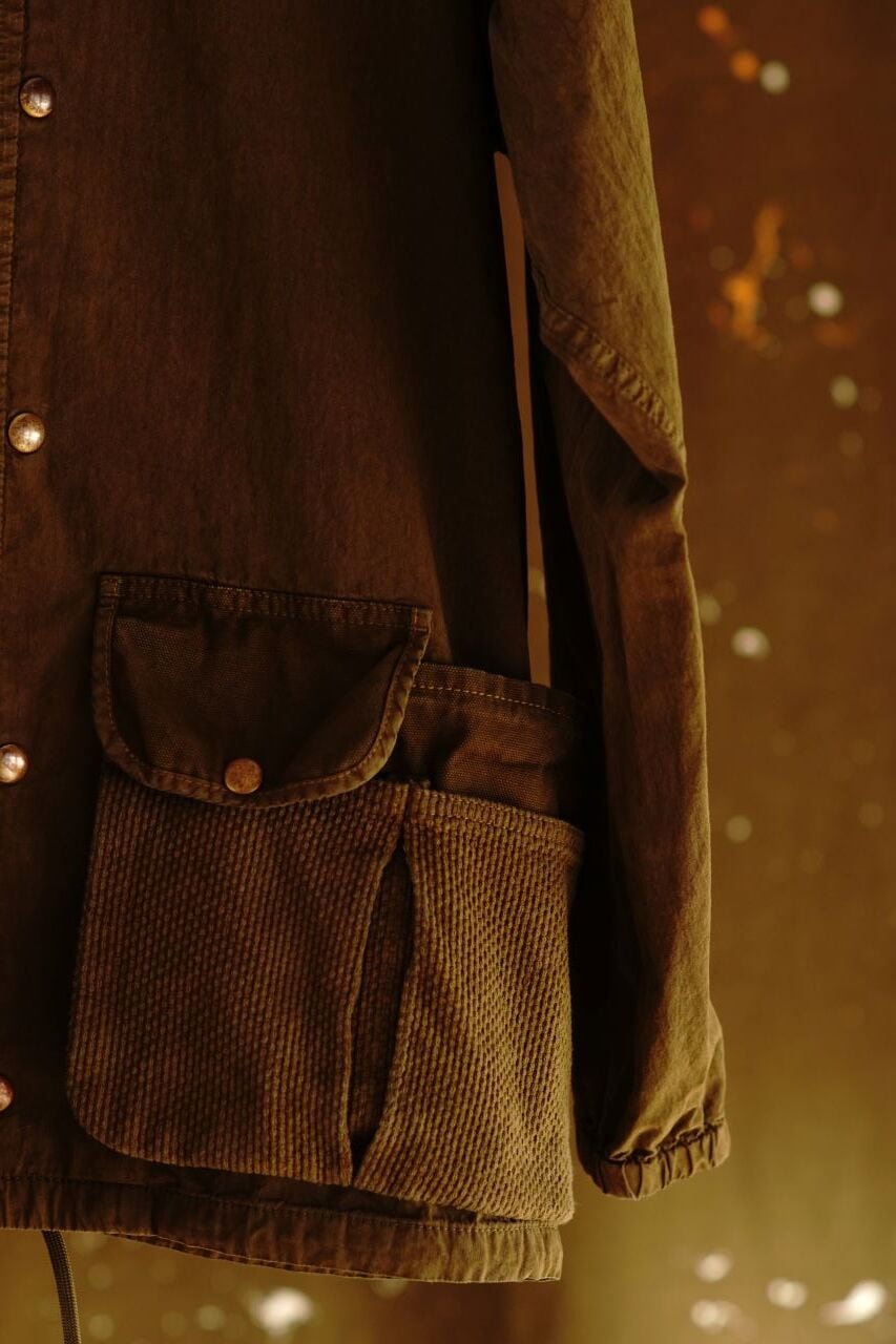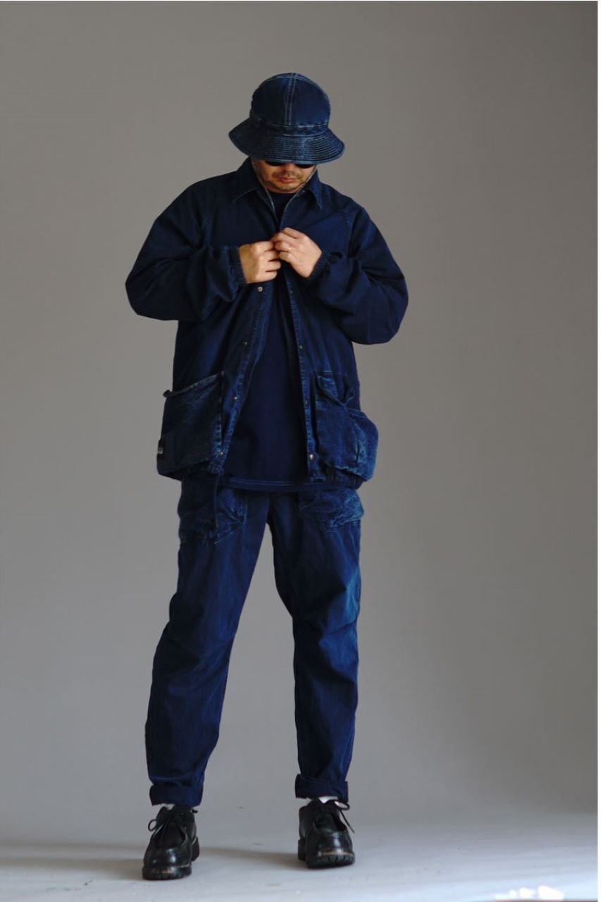 デザインベースは「コーチジャケット」。また、商品名通り≪ハンズフリー(手ぶら)≫で過ごせる大きな収納ポケットも完備。そのポケット生地にはインディゴ染めの「刺し子」を使用。柔道着にも使われる摩擦や引き裂きに強い素材にも、職人技のシェービングが活きています。また、大ぶりのベルクロモヘアテープがワッペンアレンジを可能にしてくれます。