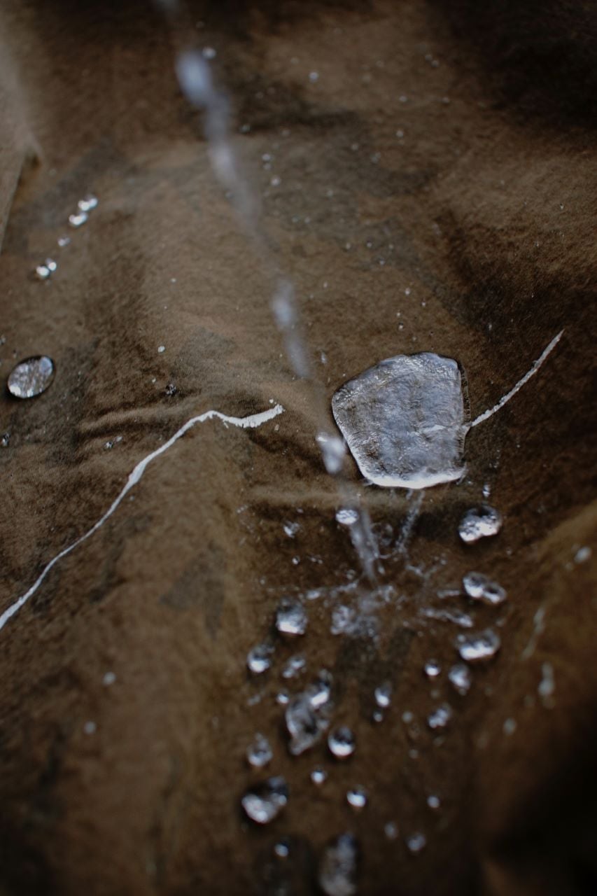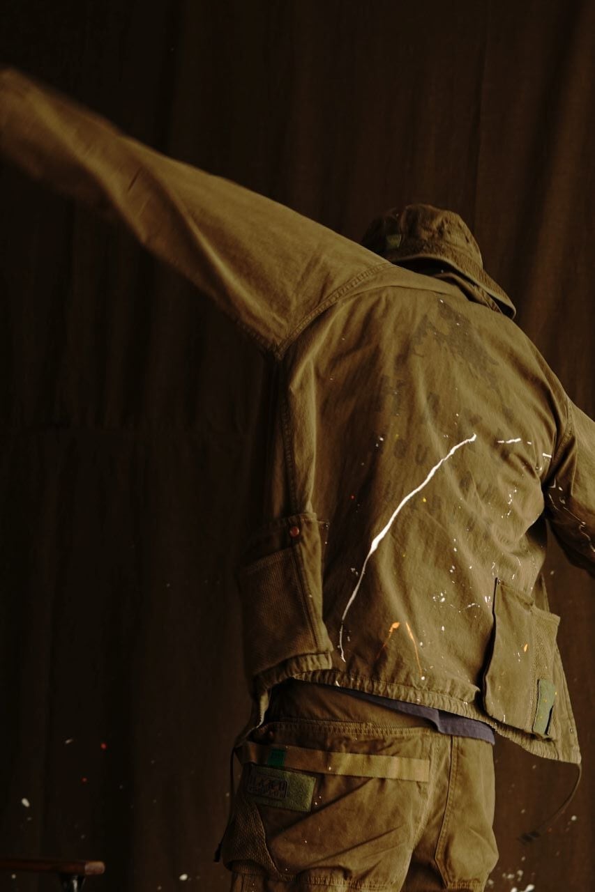 最後は「ペンキ飛ばし加工」は1点づつデザイナー自らが筆を持ち絵を描くようにペンキを飛ばしていきます。そんなアナログな手法をあえて選択し繋ぎ合わせる事で生まれた