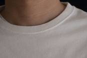 首リブと身頃をつなぐ縫製は丈夫なダブルステッチ。